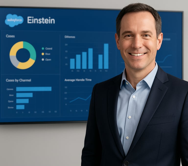 AI-first service models where speed, personalization, and cost efficiency drive competitive advantage. Salesforce Einstein is not just a tool — it’s the engine of intelligent service delivery.