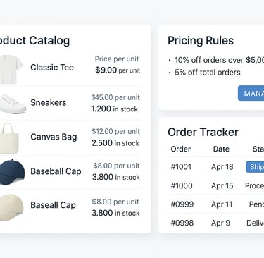 Connect real-time data from SAP, Oracle, or NetSuite for pricing, inventory, and fulfillment visibility.