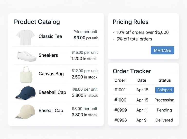 Empower clients to re-order, track shipments, download invoices, and manage contracts 24/7.