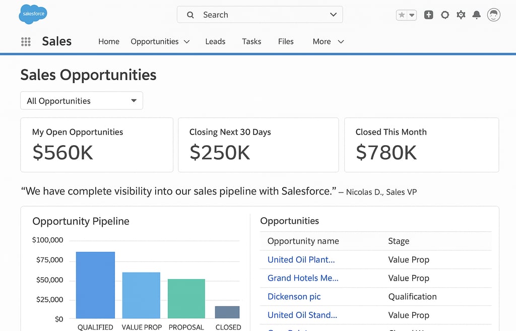 Analytics & AI Capabilities: Einstein-driven insights and lead management features are frequently highlighted as game-changing—especially for managing pipeline and prioritizing follow-up.